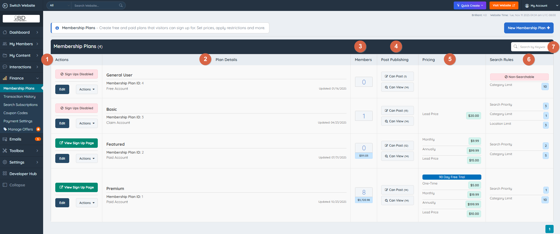 - 3. Membership Plan Type: Indicates whether the plan is Free, Paid, or a Claim Listing account.