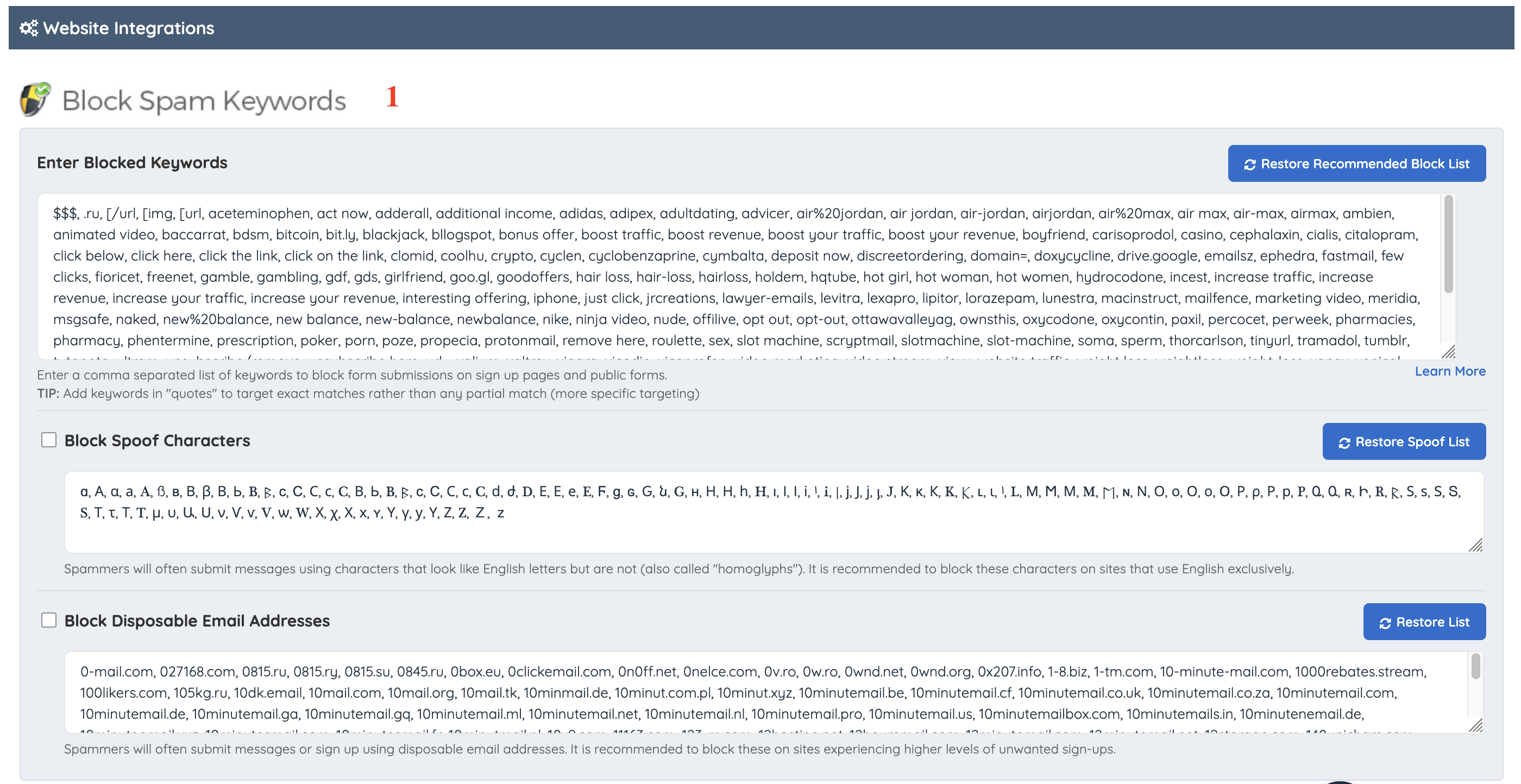 1. Block Spam Keywords