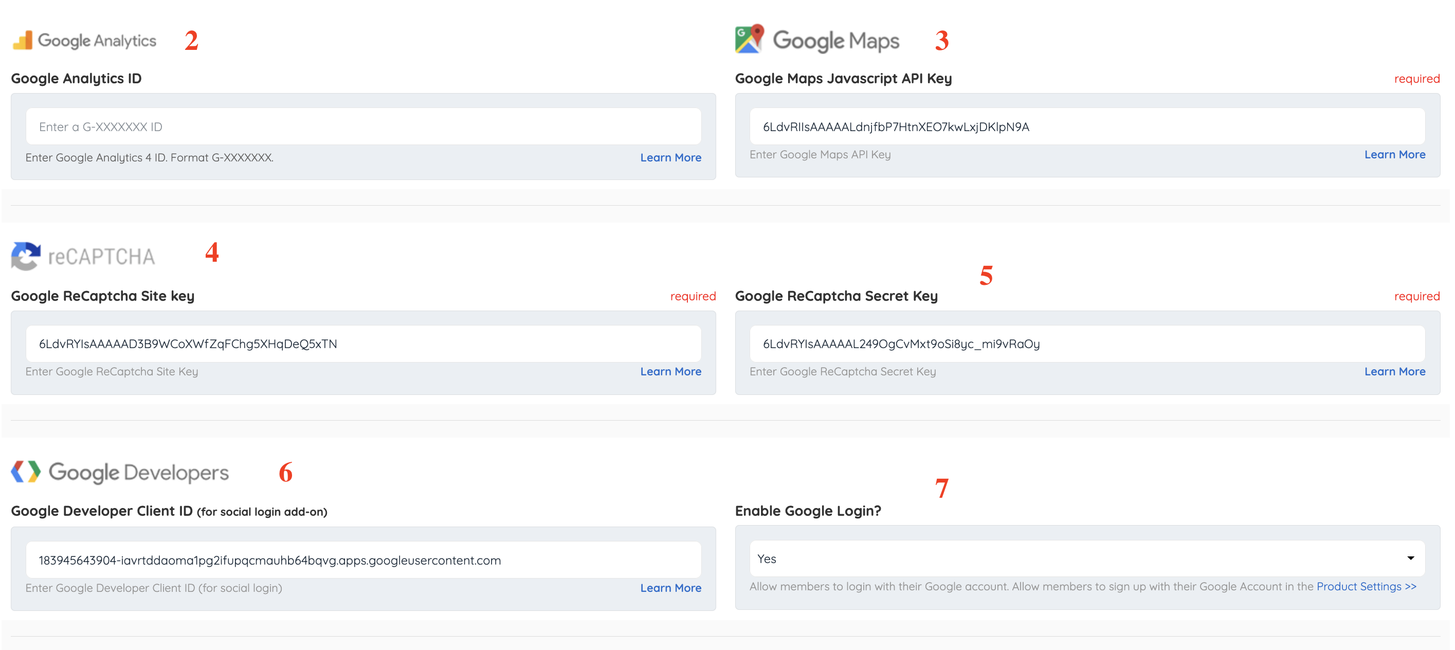 6. Google Developer Client ID (for social login add-on)