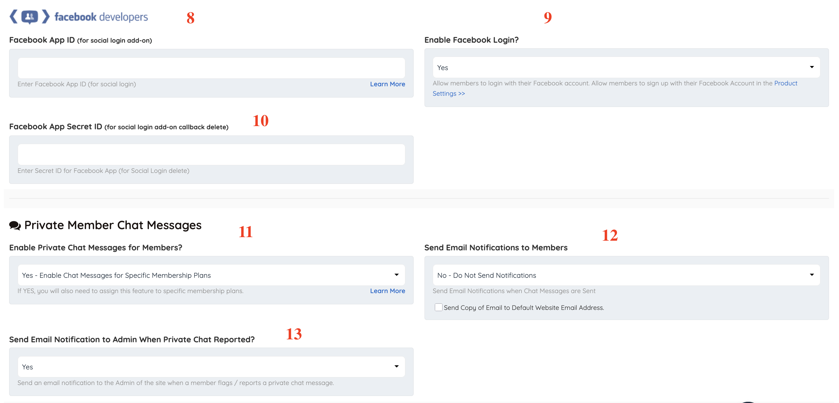 11. Enable Private Chat Messages for Members?