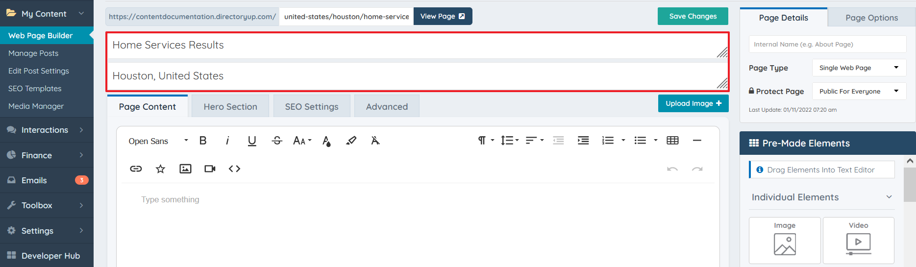 Once this is complete save the changes. Now navigate to the same page on the front end of the website to see the new custom content and SEO Elements reflected on the page: