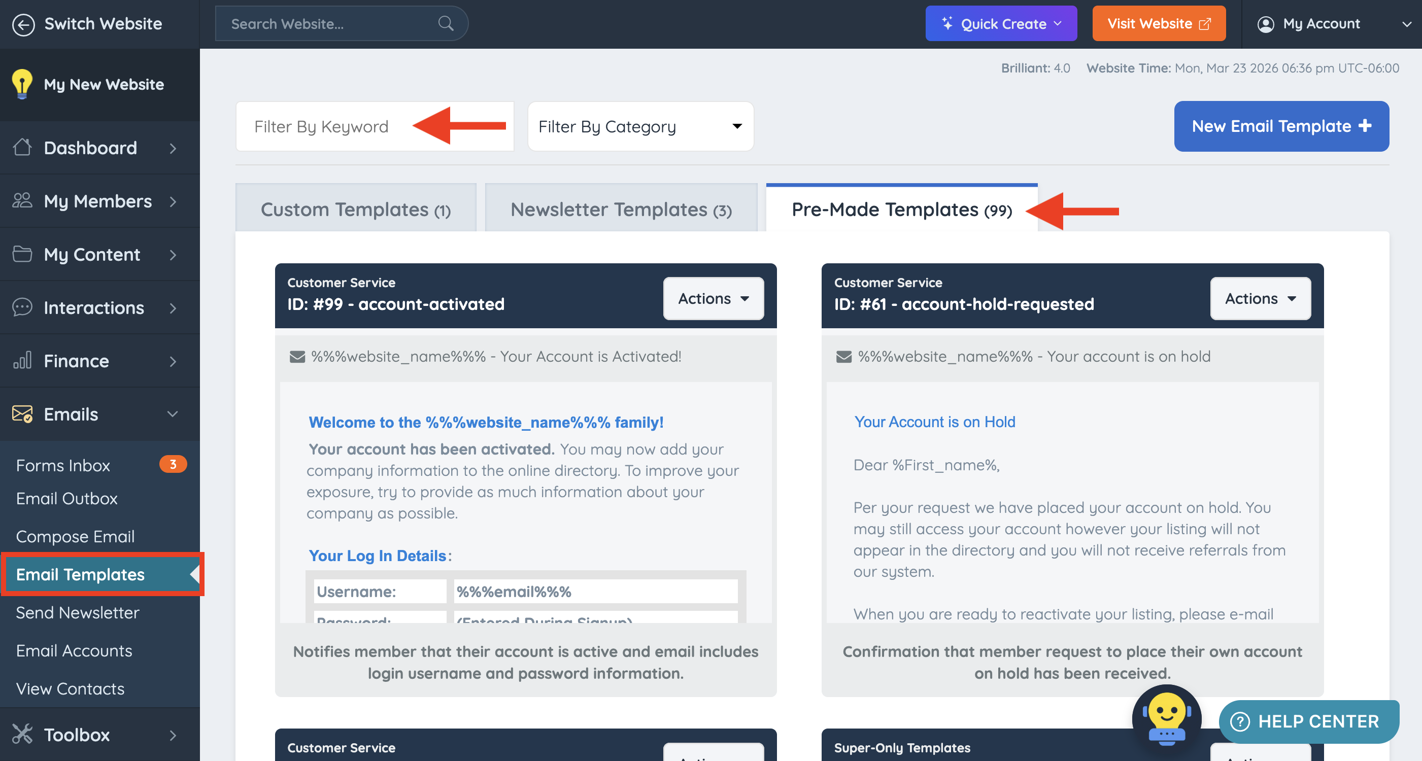 Managing and Editing Email Templates