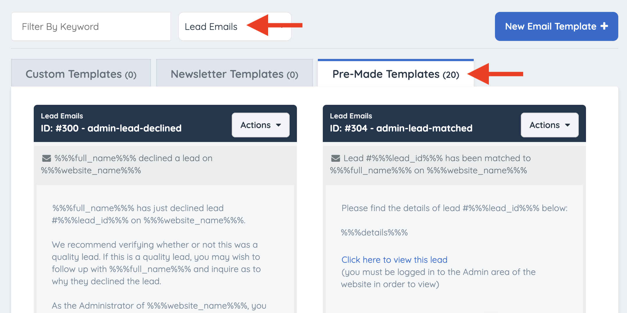 Lead Emails have a total of 20 templates: