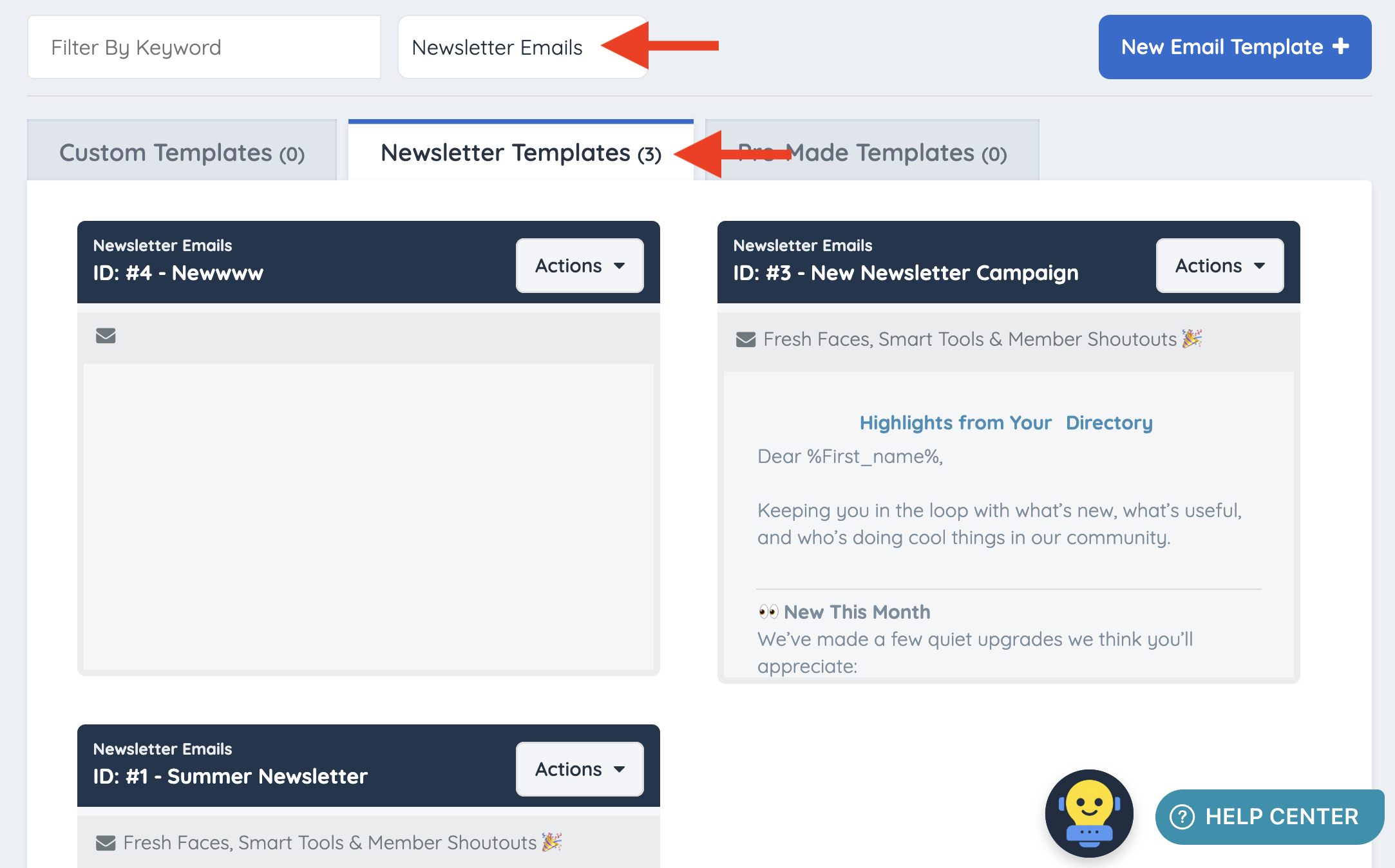 Newsletter Emails have a varying total of templates. This tab will display any email that was created when sending a newsletter.