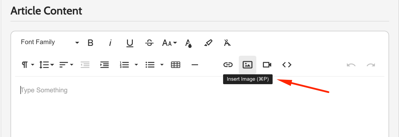 * To confirm that the "Access Media Manager - Froala Text Editor" is working as expected, log in as the admin member and click on the "add image" icon. The FOLDER icon should be displayed: