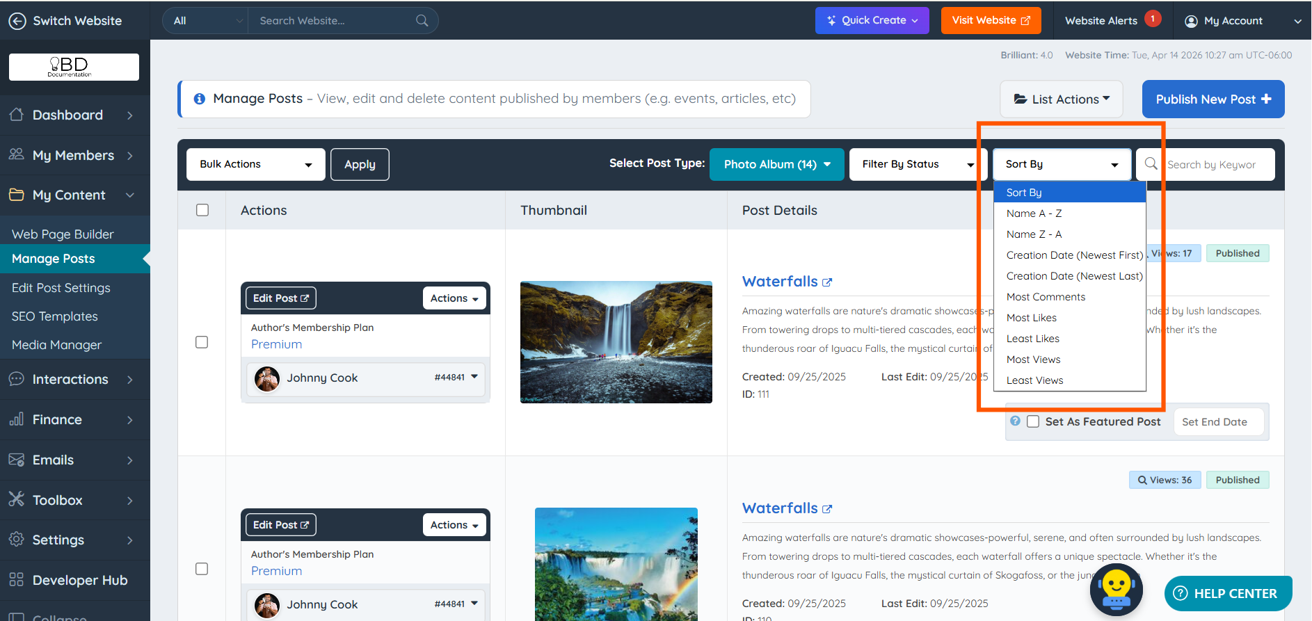 - Login To Create Post: Once the Post type and author have been selected, click on the button to access the member's account and create the post.