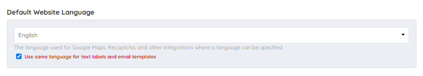 NOTE: Recaptcha and Google Maps have their own lists of supported languages; if the default language selected for the site is not supported on their end, the language for that tool will default to English.