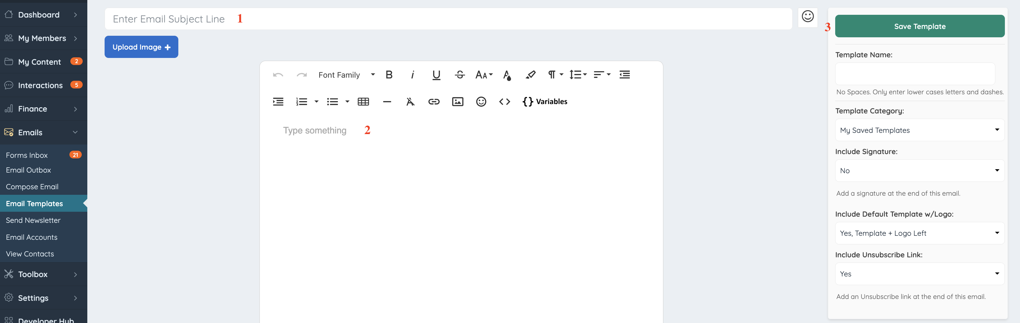 To create a new email template, go to Emails >> Email Templates. On the top right corner, there is a button to create a "New Email Template +":