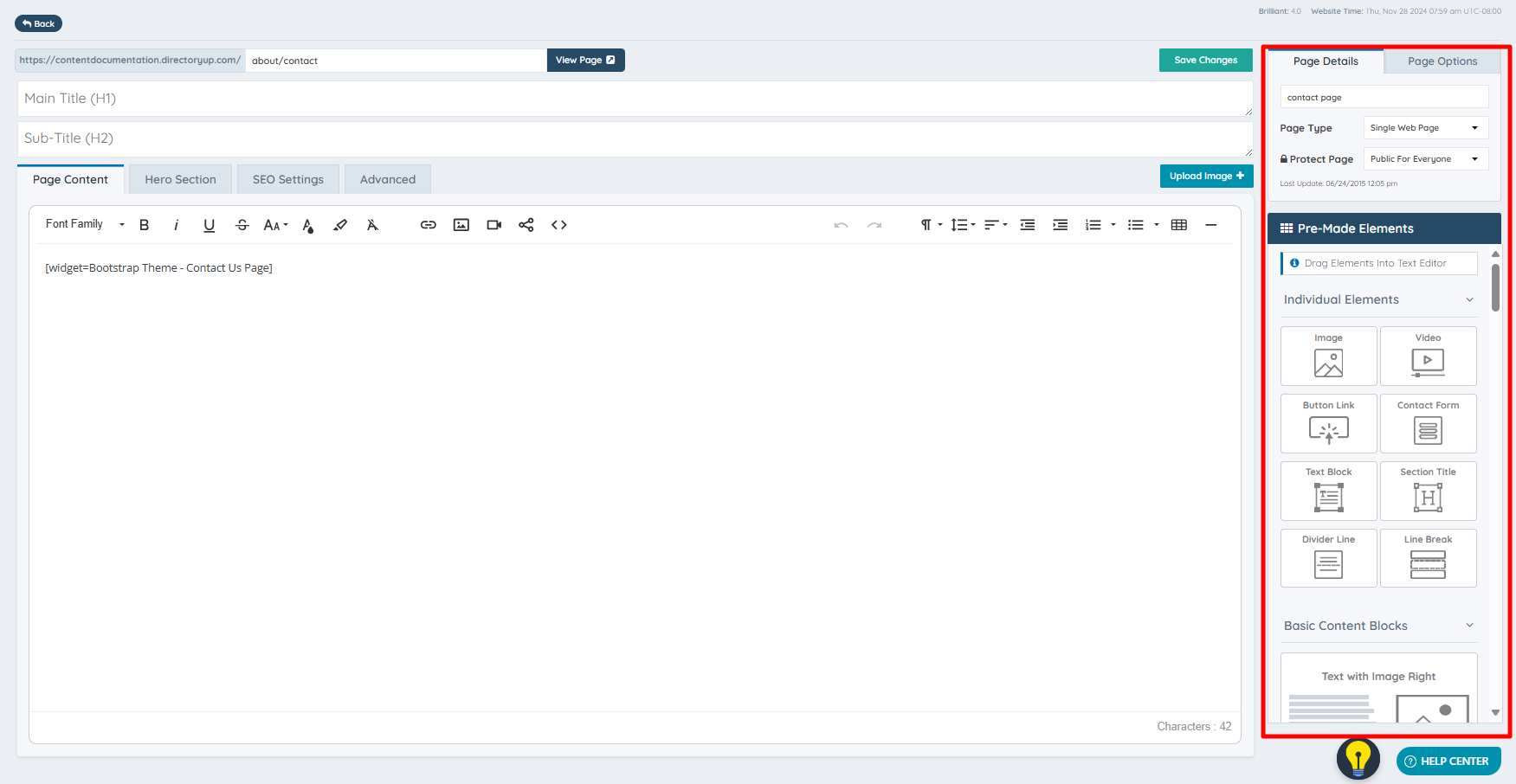 Webpage Builder: Page Details Tab & Page Options Tab