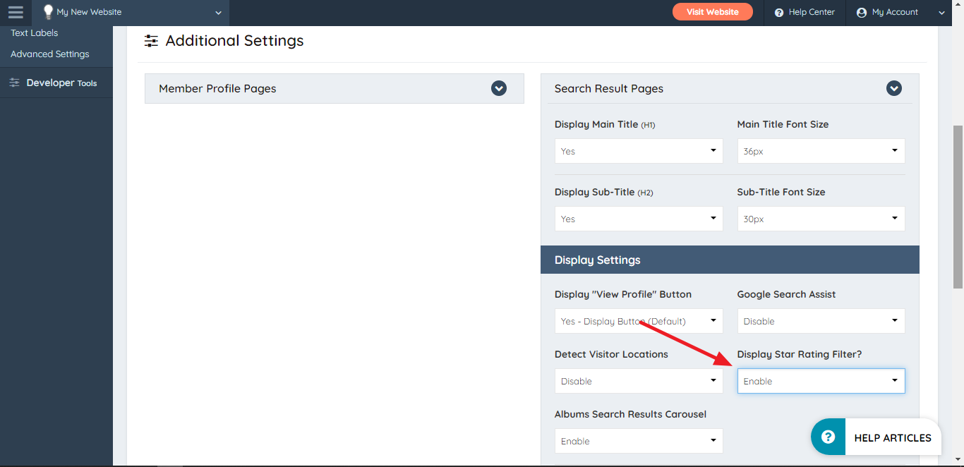 When a visitor performs a member search on the website, they can use this additional filter to only display members with an overall rating of, for example, 4 or more stars.