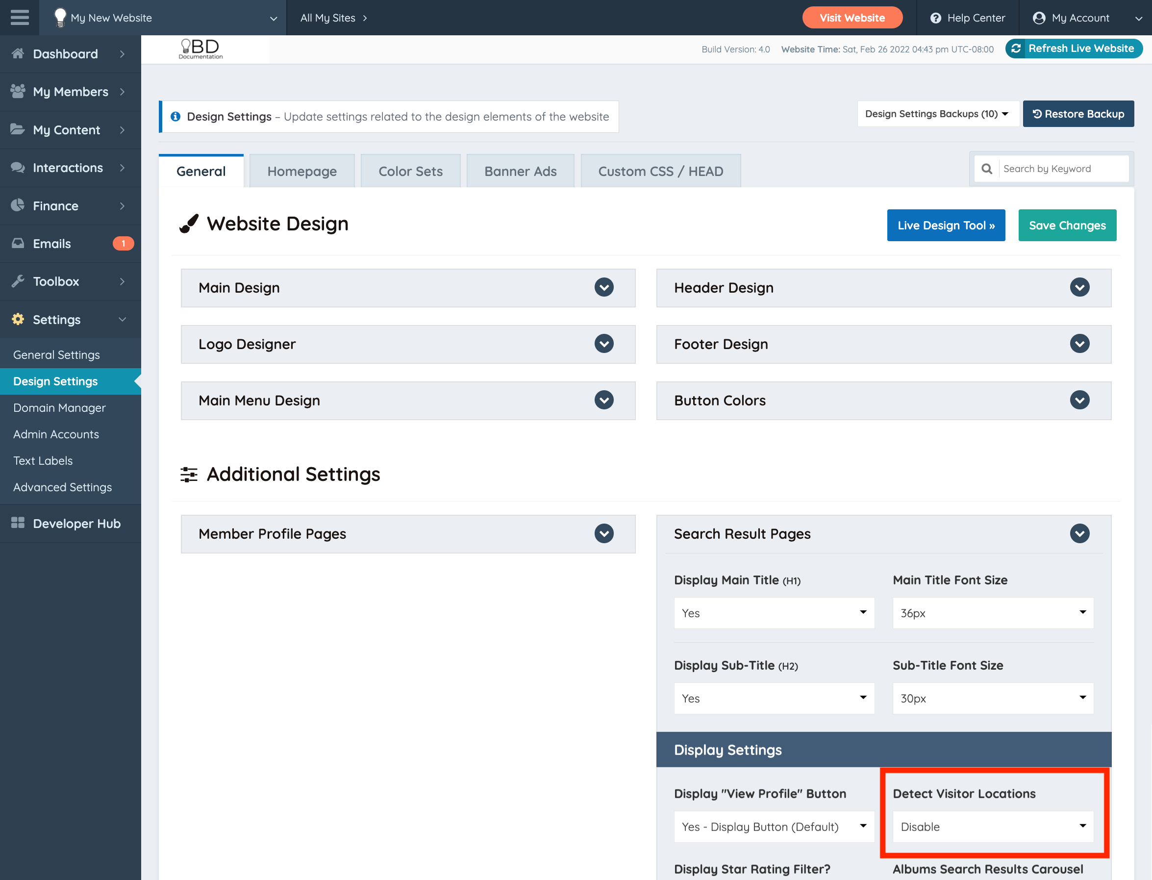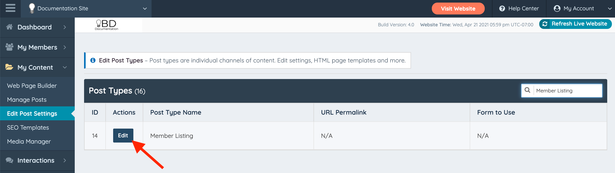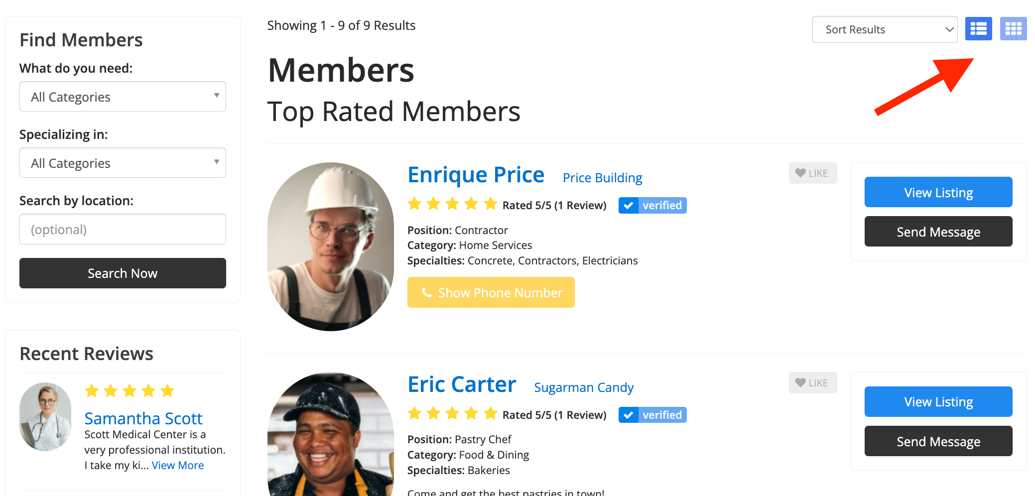 Content » Edit Post Settings » Member Listings » Search Results tab » Additional Settings: