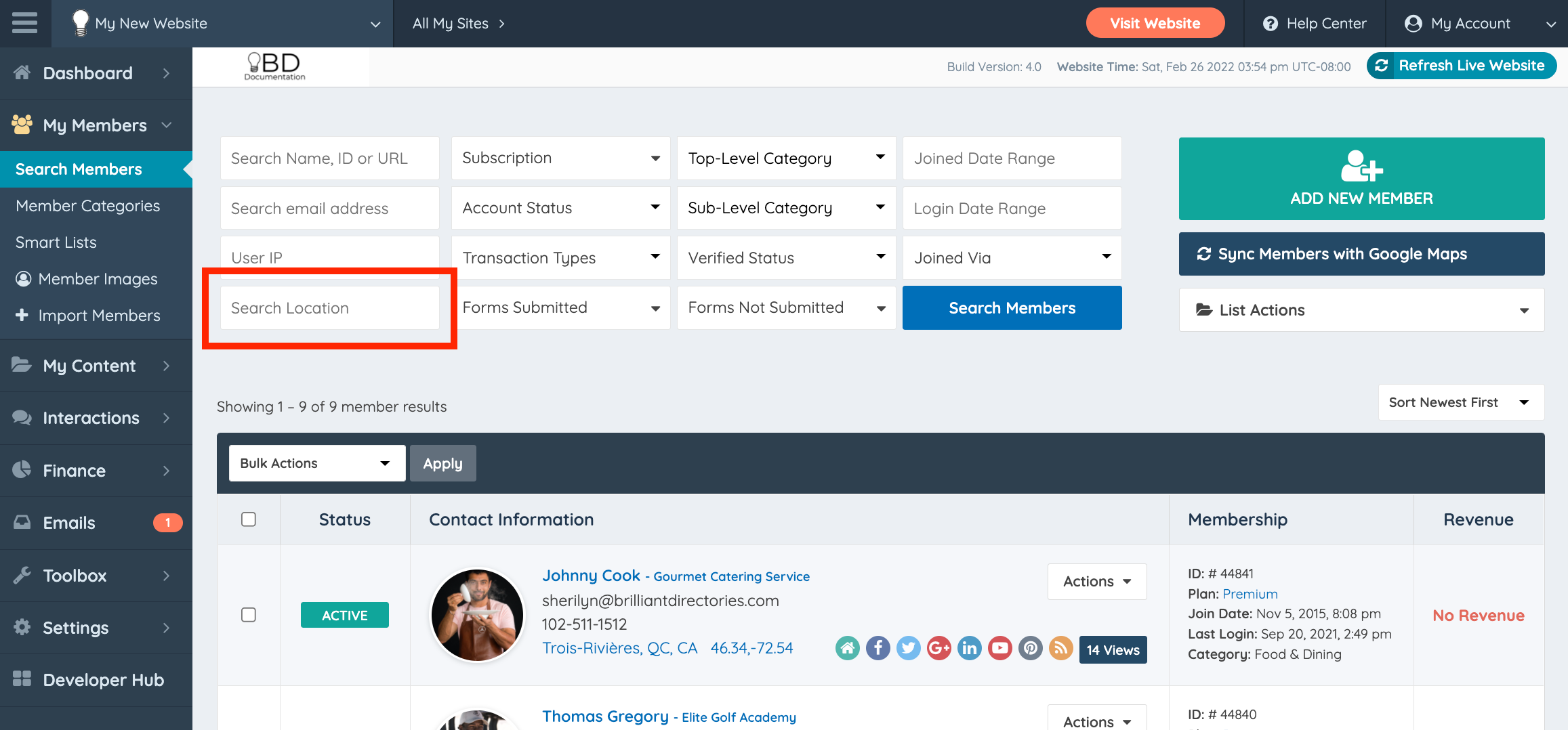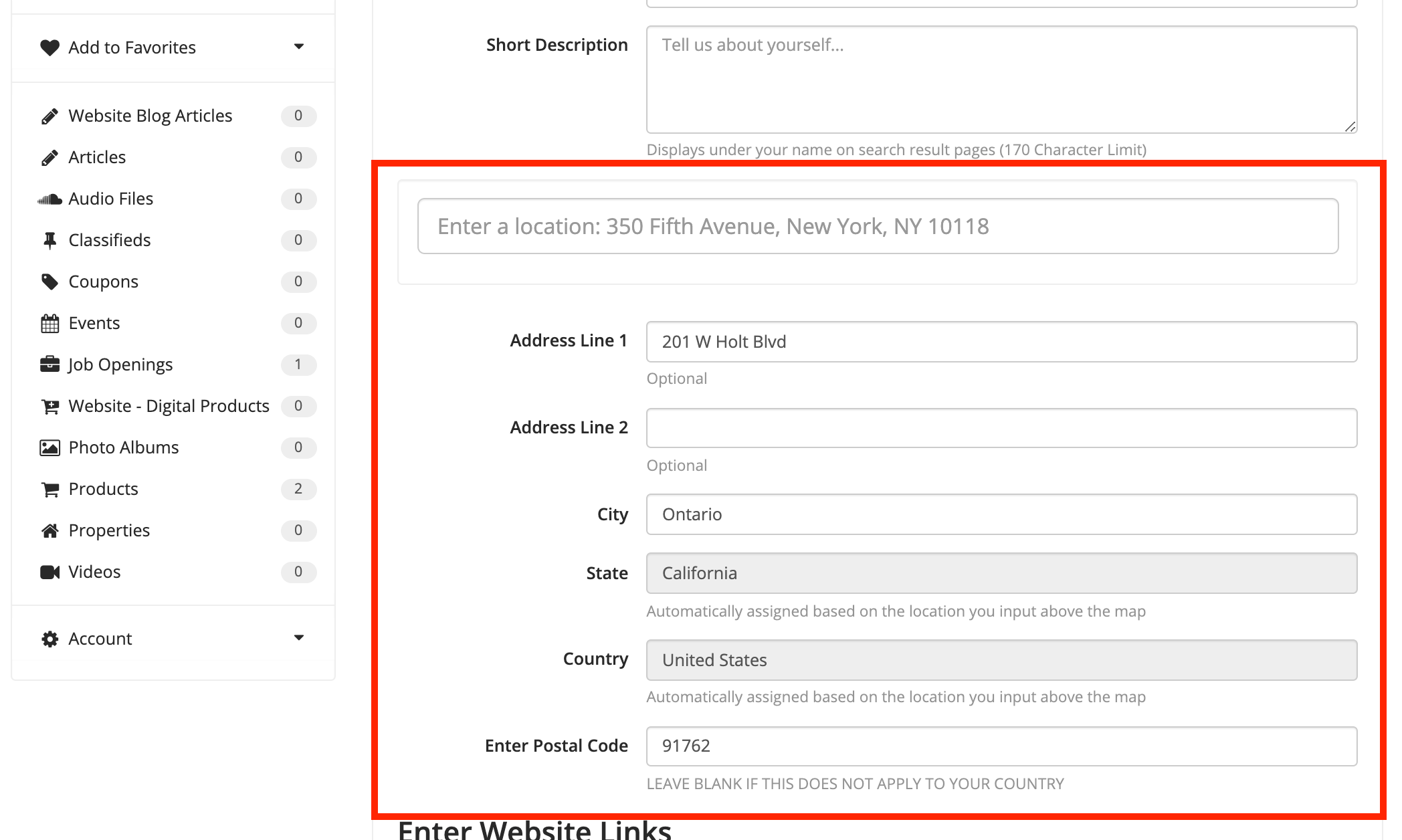 This form is where the members will enter their location that displays on the profile and is used for completing member location searches.