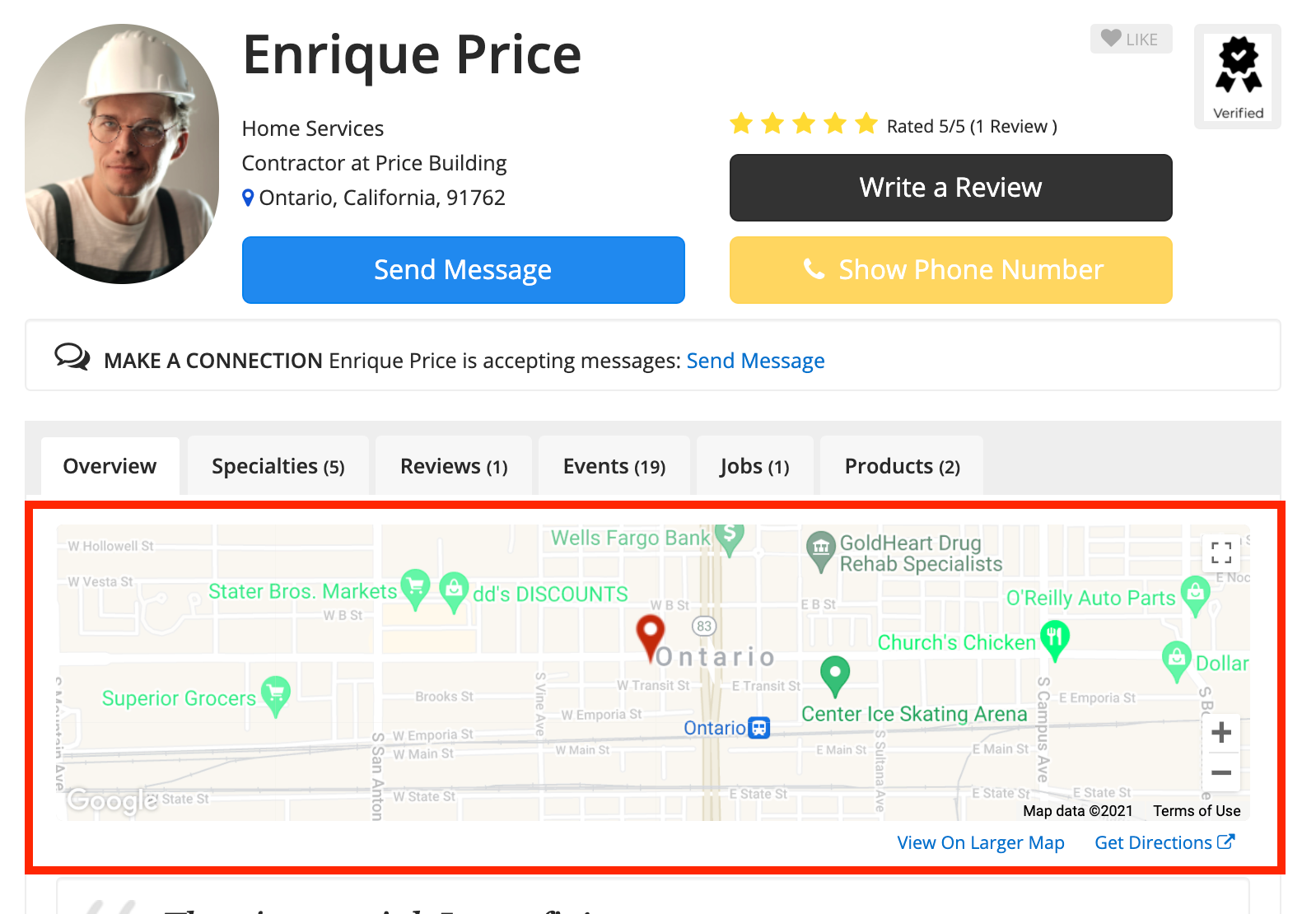 The display of Google Maps themselves on profile pages and search results pages (JavaScript API).