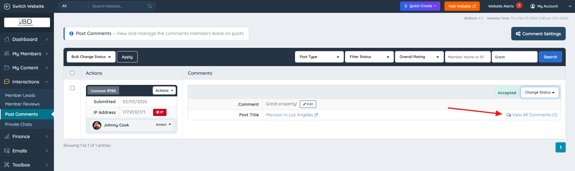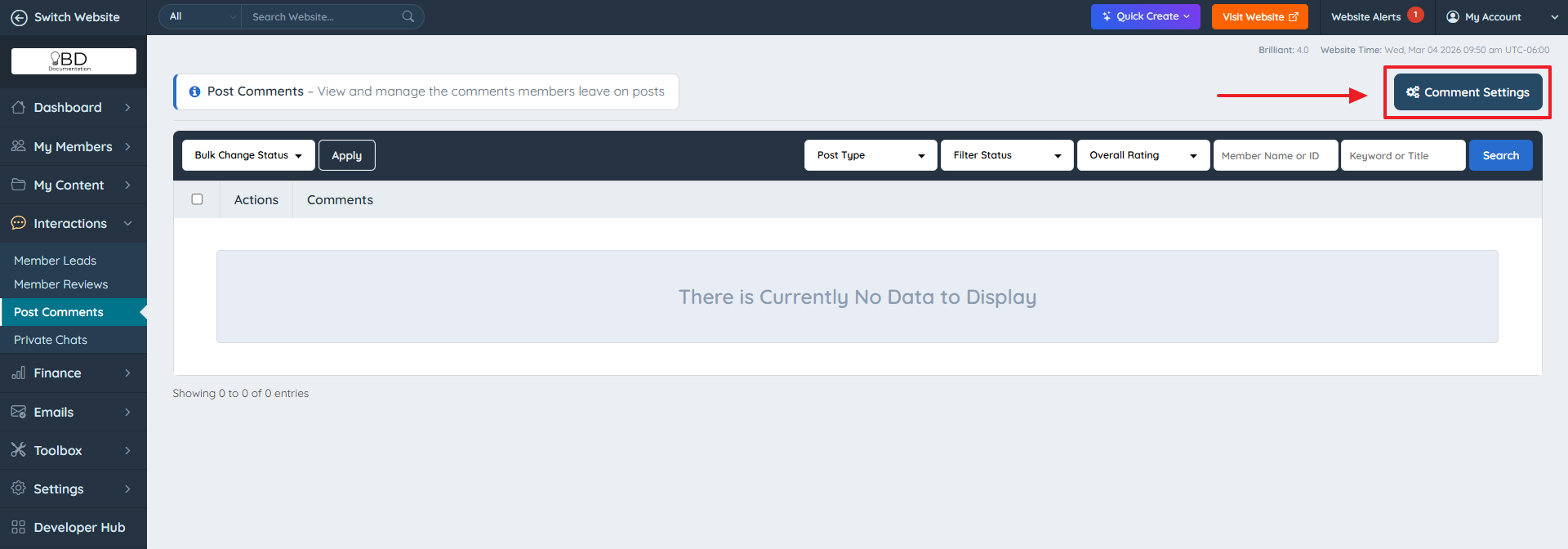 Add native comment functionality to the website. Logged-in, active members will be able to leave comments on the website’s content and reply to other members’ comments.
