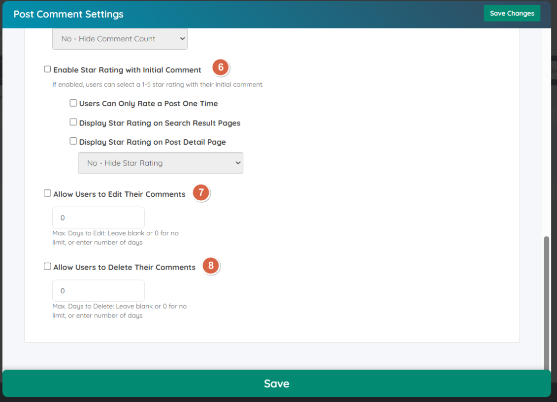 The option to give a Max. Days to Edit the submitted comment is available as well.
