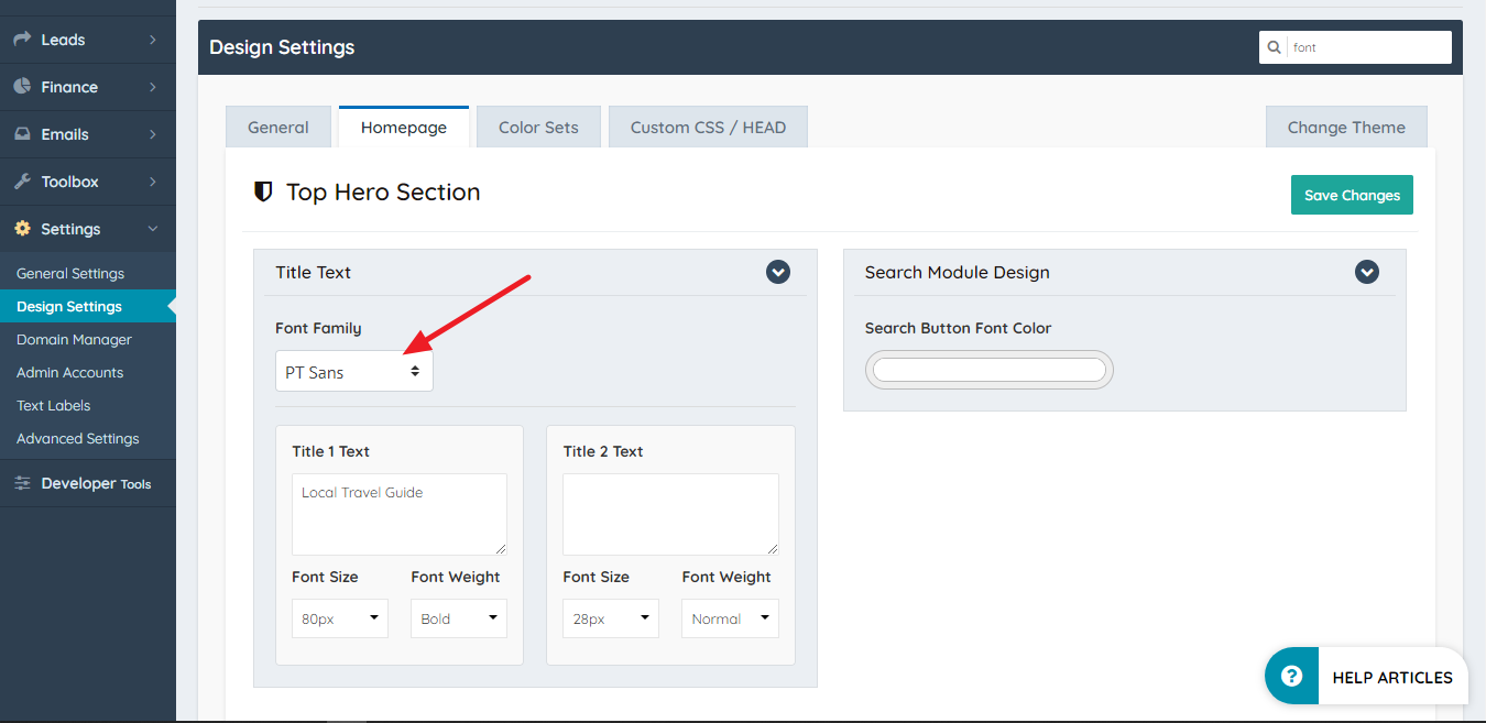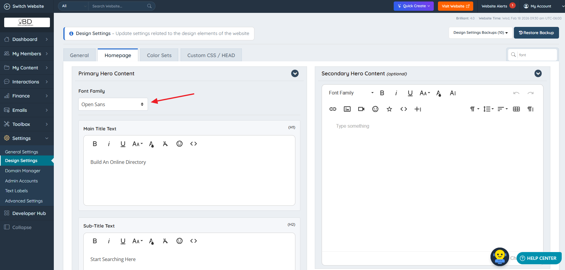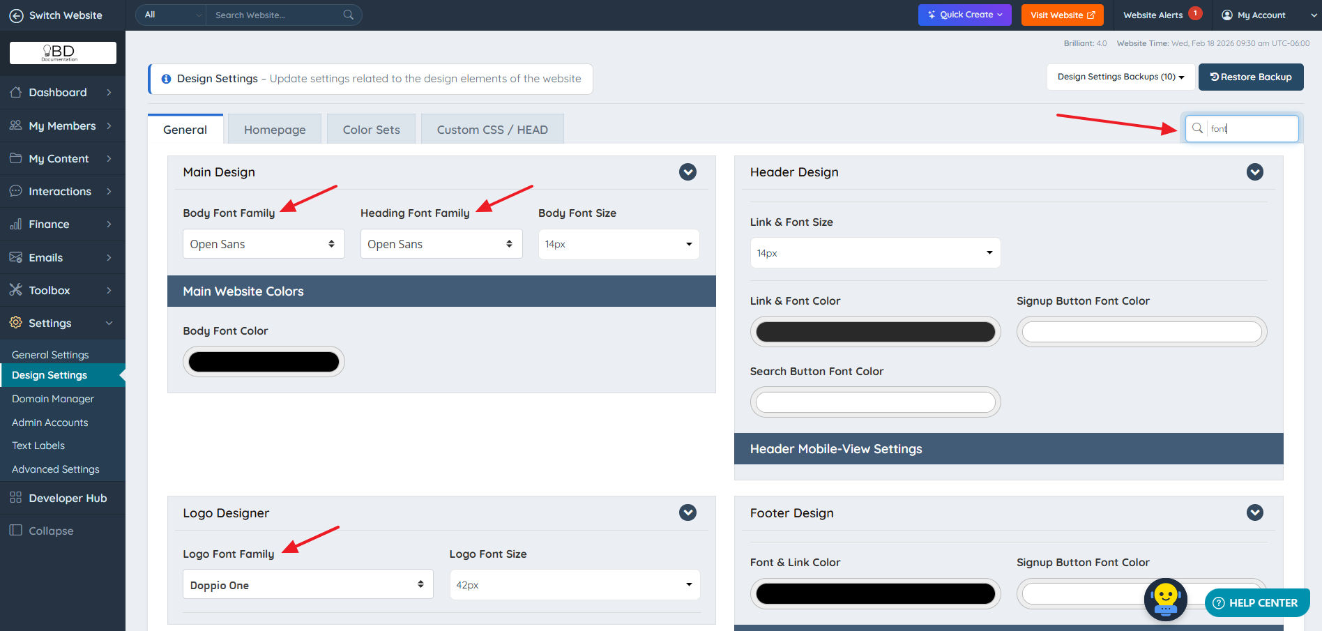 There are different places within the Design Settings that the Google Fonts Pack can be used: