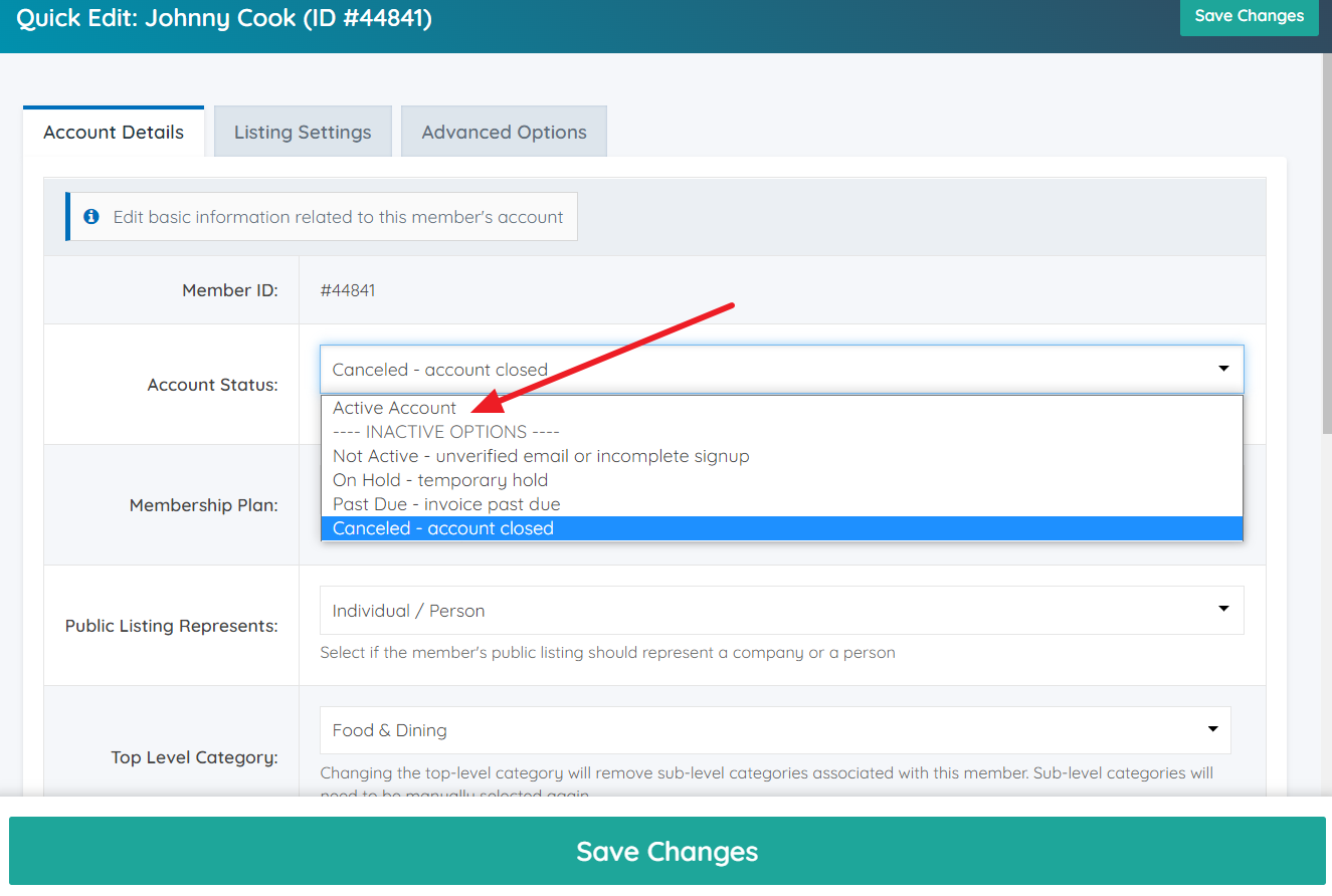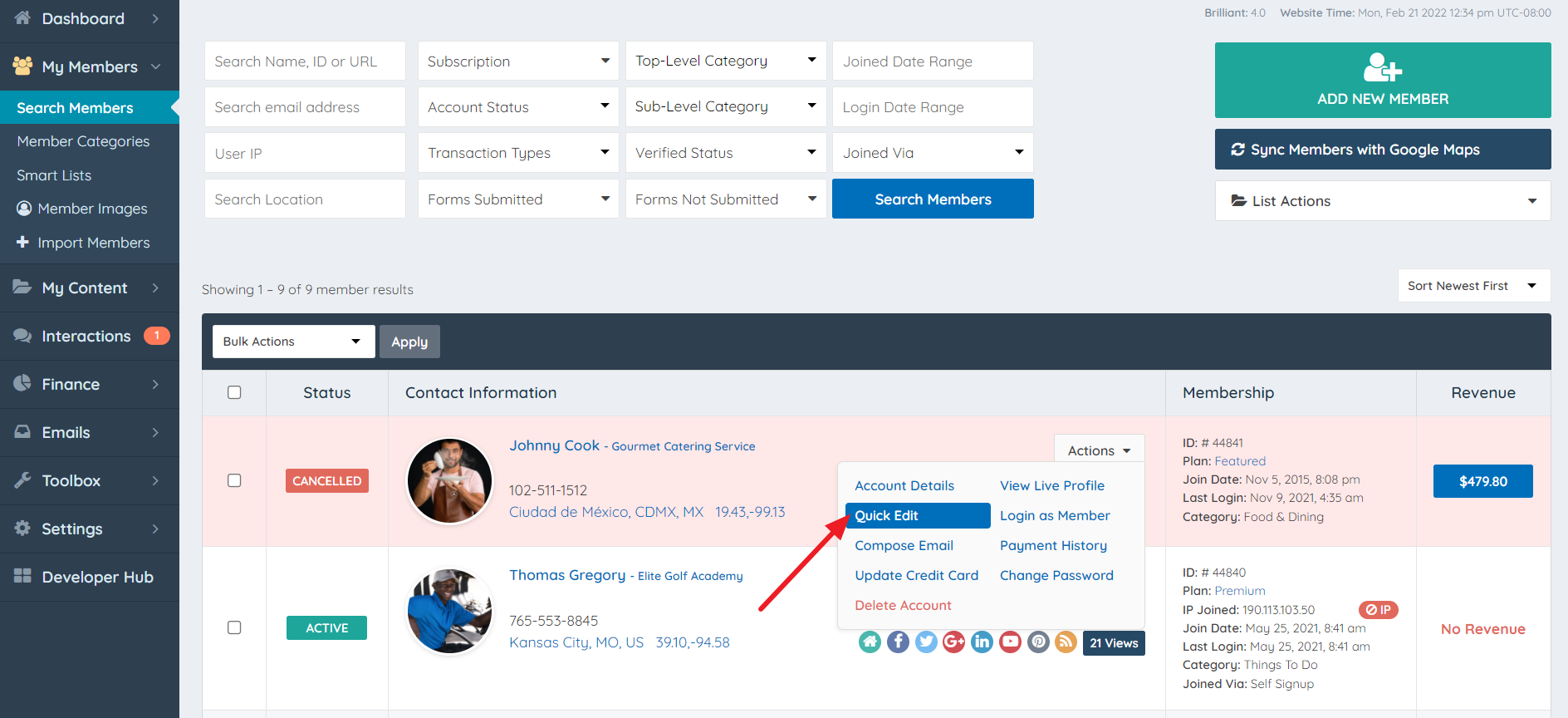 If the member comes back, the admin can easily change the status to "Active" again. In order to do this, please click on Actions >> Quick Edit: