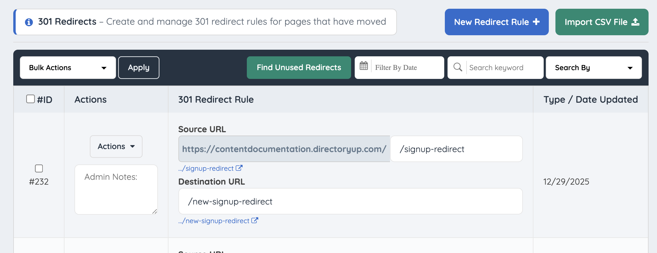 | admin | Manually created 301 redirects through the admin dashboard. |