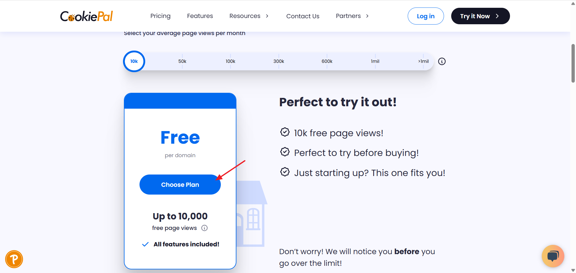 - Navigate to https://cookiepal.io/pricing.