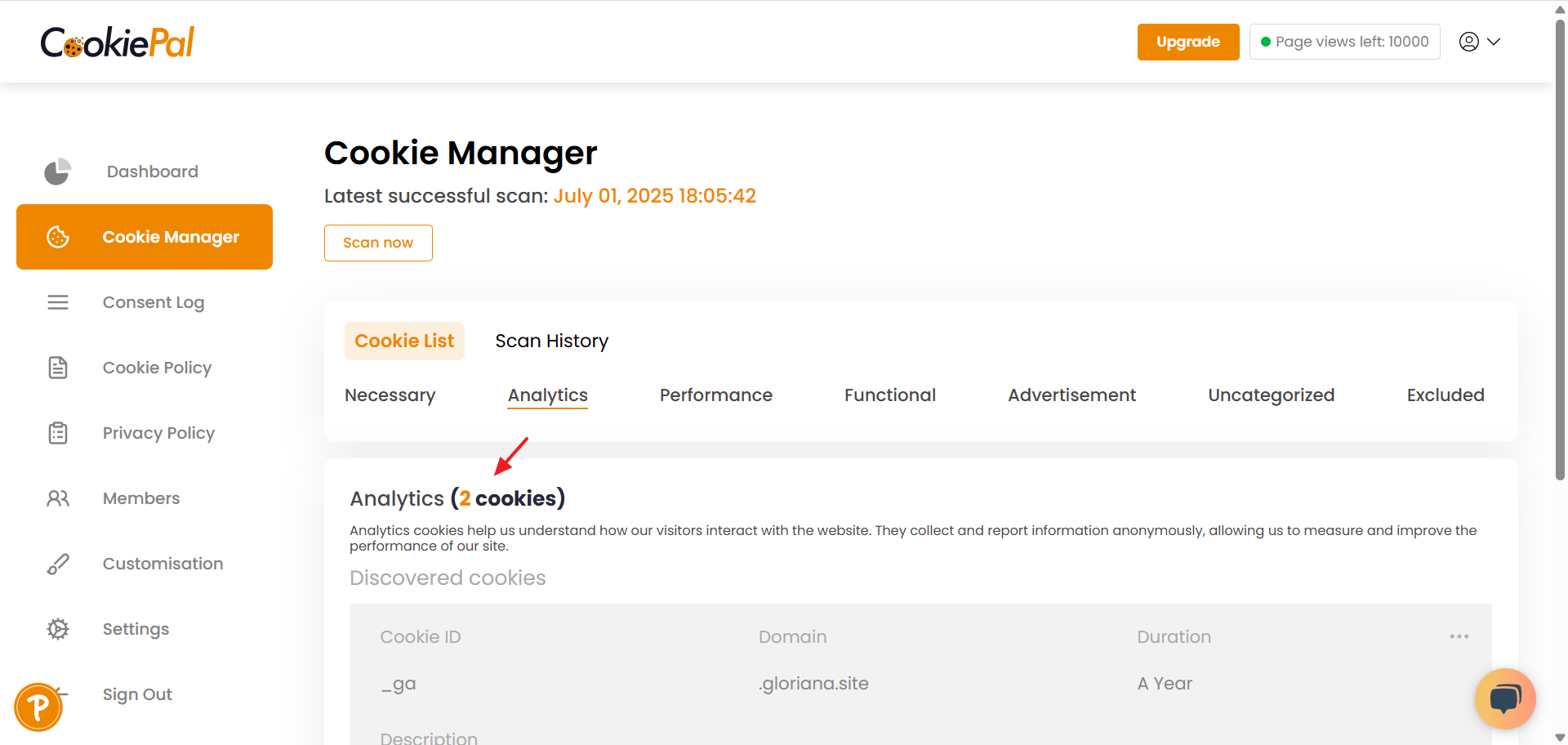 Return to the CookiePal dashboard.