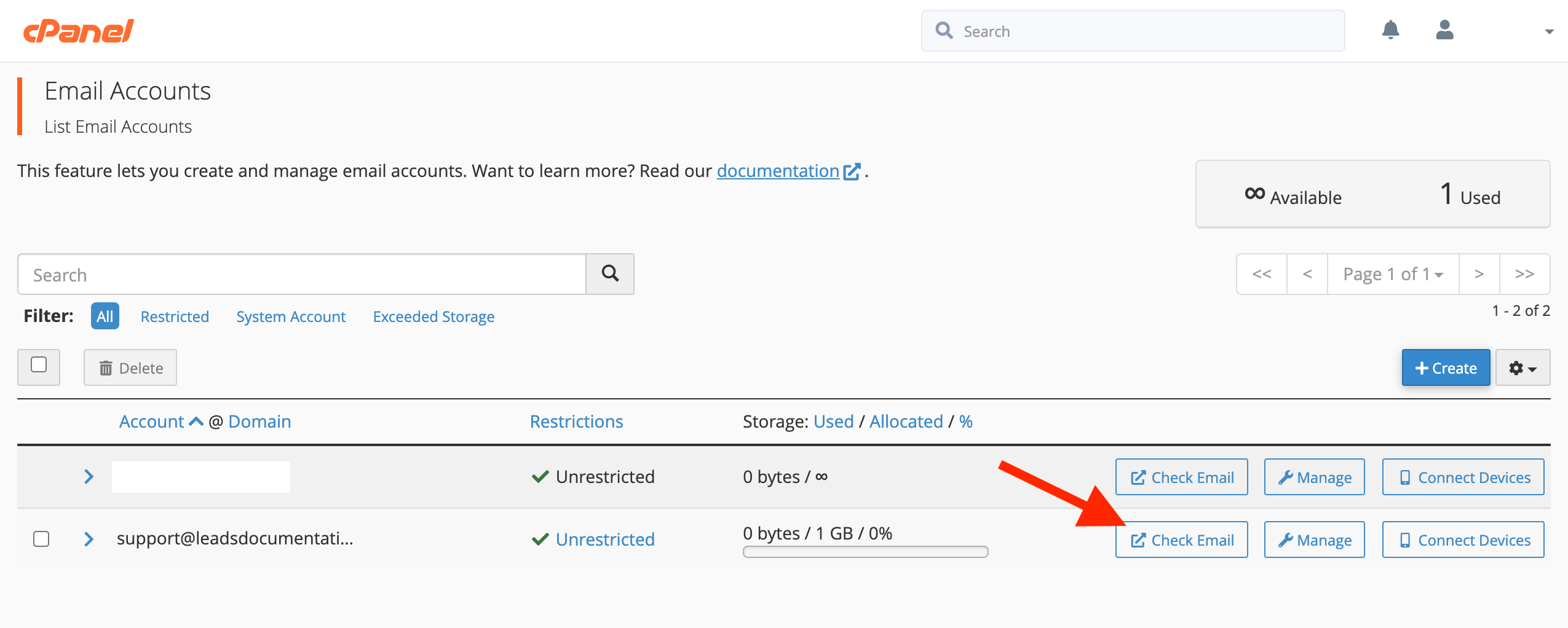 For more information about accessing webmail in the cPanel email account manager, please see the full cPanel Webmail Documentation.