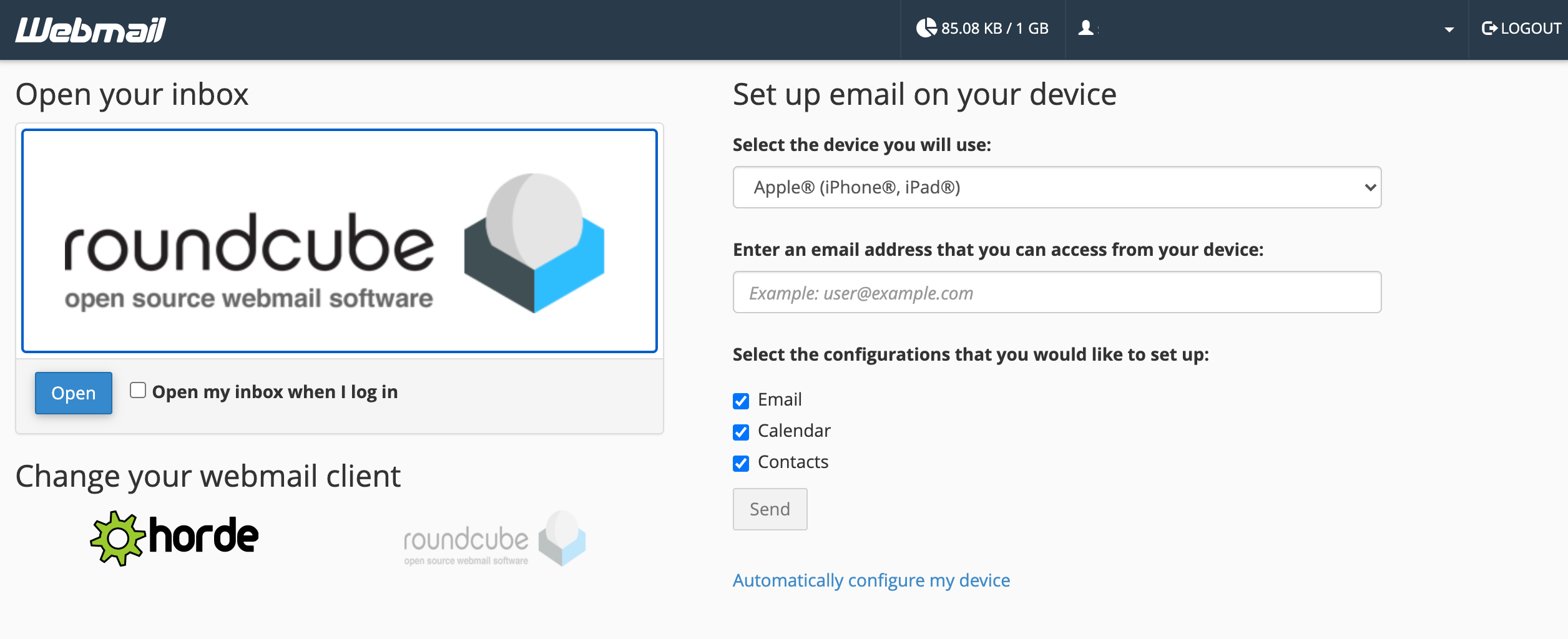 - Click on any of the Webmail Clients to open the emails inbox: