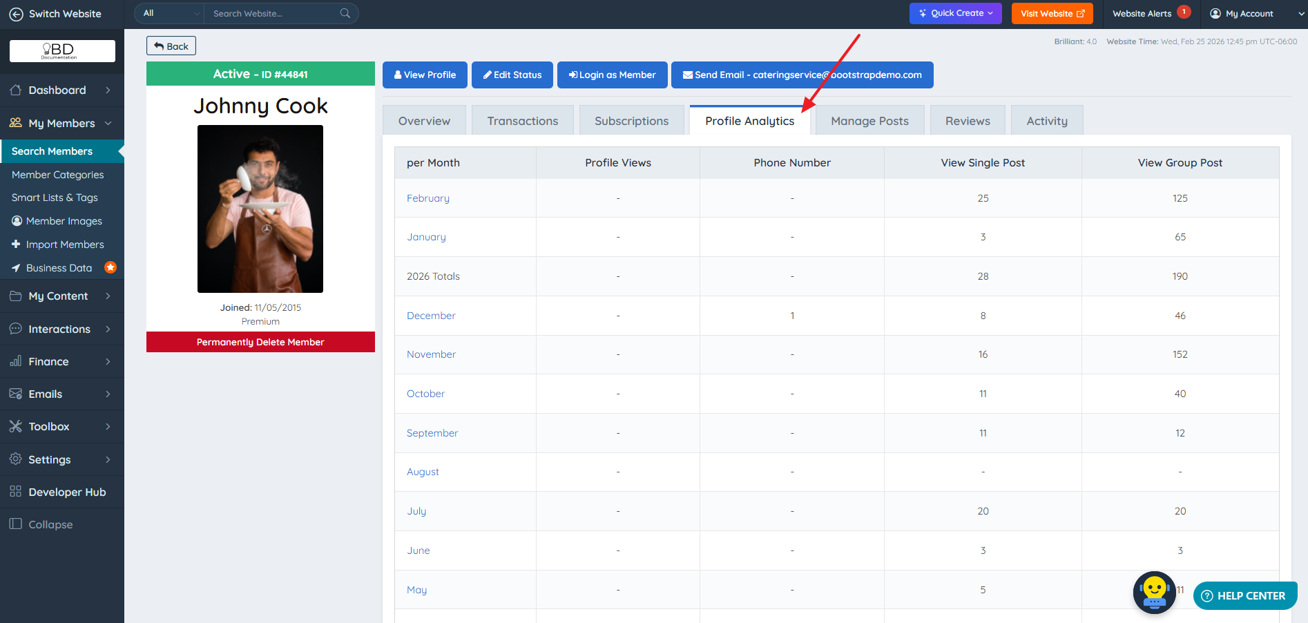 Also the admin can login as any member in that specific Membership Level, on the left sidebar look for Profile Statistics click on it and the profile views per month will be shown: