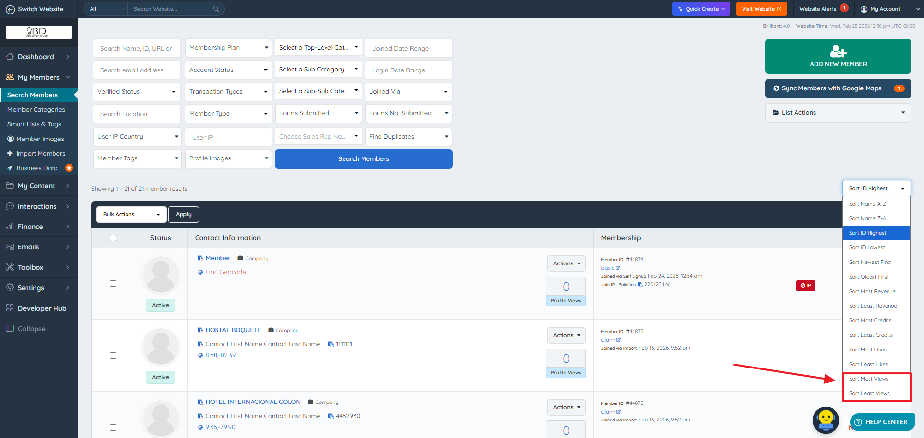 The admins will be able to see the amount of views in the member search results, as well as in the account details if the profile statistics are enabled for the membership plan: