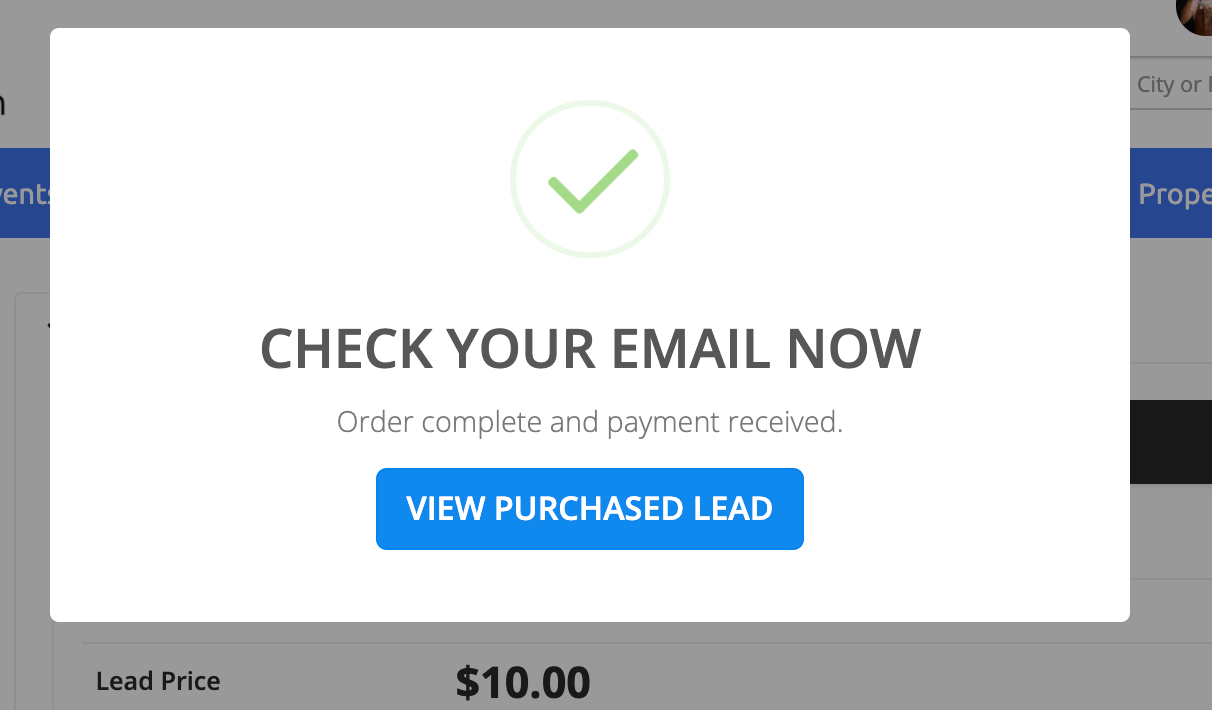 5. In either case, the members will get a success message if the credits, promo codes, or credit card is charged correctly, which will allow the member to instantly see the lead details: